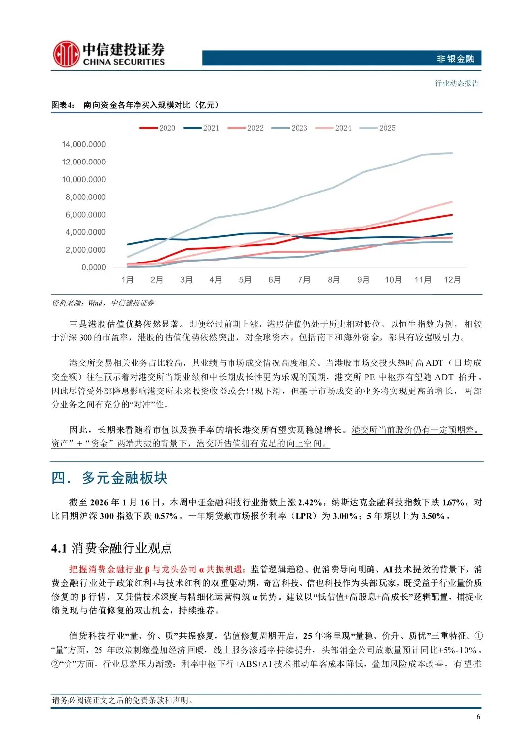 证券:对证券公司而言,衍生品交易监管办法征求意见稿意味着衍生品业务模式将由“通道+自营”向“资本+风控” 双重约束转变。保险:负债端看好分红险持续承接居民稳健投资需求并驱动新单实现快速增长,资产端权益市场向好有望带来业绩弹性。香港市场及港交所观点:美联储降息背景下,港股市场流动性宽松,关注非银板块向上弹性。多元金融观点:消费金融行业处于政策红利+技术红利的驱动期。