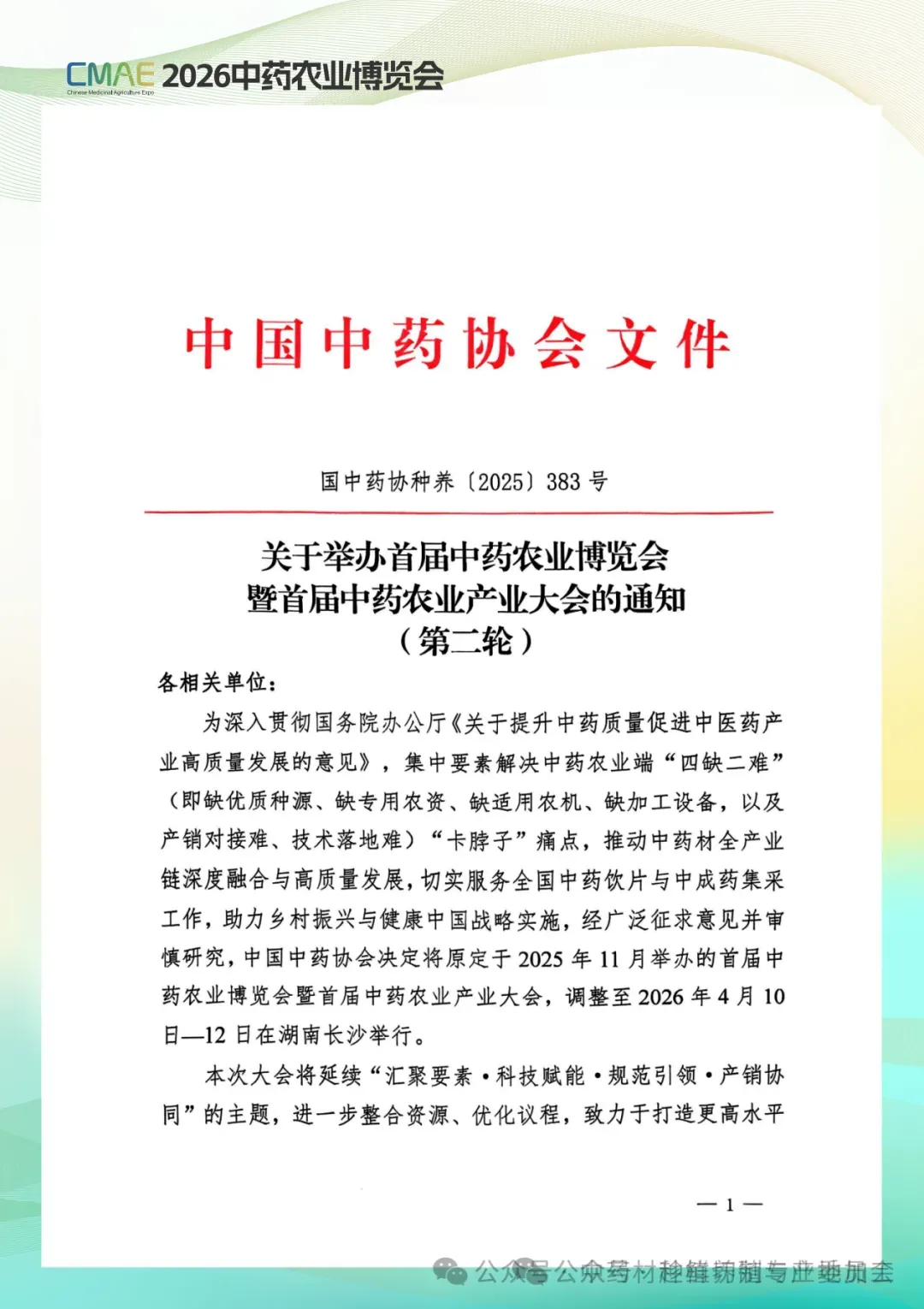 为深入贯彻国务院办公厅《关于提升中药质量促进中医药产业高质量发展的意见》,集中要素解决中药农业端"四缺二难"(即缺优质种源,缺专用农资,缺适用农机,缺加工设备,以及产销对接难,技术落地难)"卡脖子"痛点,推动中药材全产业链深度融合与高质量发展,切实服务全国中药饮片与中成药集采工作,助力乡村振兴与健康中国战略实施,经广泛征求意见并审慎研究,中国中药协会决定将原定于2025年11月举办的首届中药农业博览会暨首届中药农业产业大会,调整至2026年4月10日12日在湖南长沙举行。