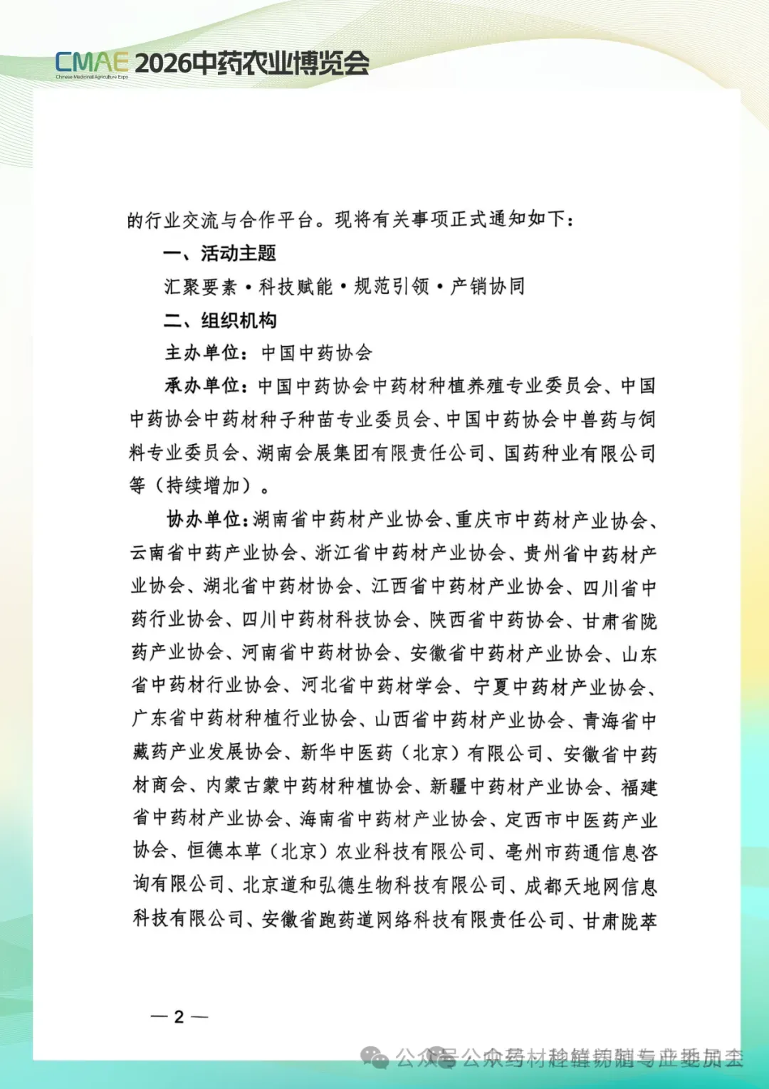 中国中药协会中药材种植养殖专业委员会,中国中药协会中药材种子种苗专业委员会,中国中药协会中兽药与饲料专业委员会,湖南会展集团有限责任公司,国药种业有限公司等(持续增加).