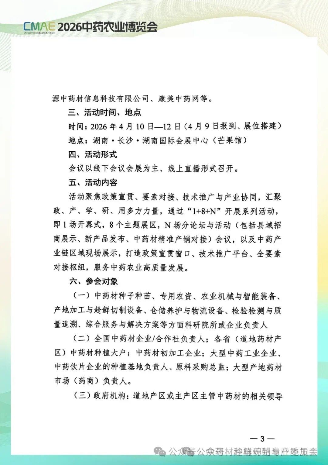 活动聚焦政策宣贯,要素对接,技术推广与产业协同,汇聚政,产,学,研,用多方力量,通过"1+8+N"开展系列活动,即1场开幕式,8个主题展区,N场分论坛与活动(包括县域招商展示,新产品发布,中药材精准产销对接)会议,以及中药产业链区域现场展示,打造政策宣贯窗口,技术推广平台,全要素对接枢纽,服务中药农业高质量发展。