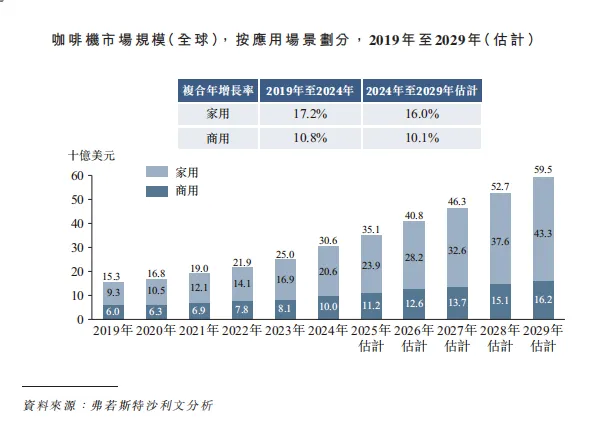 格米莱的快速发展,得益于其所处的咖啡机市场正处于高速增长期。弗若斯特沙利文数据显示: