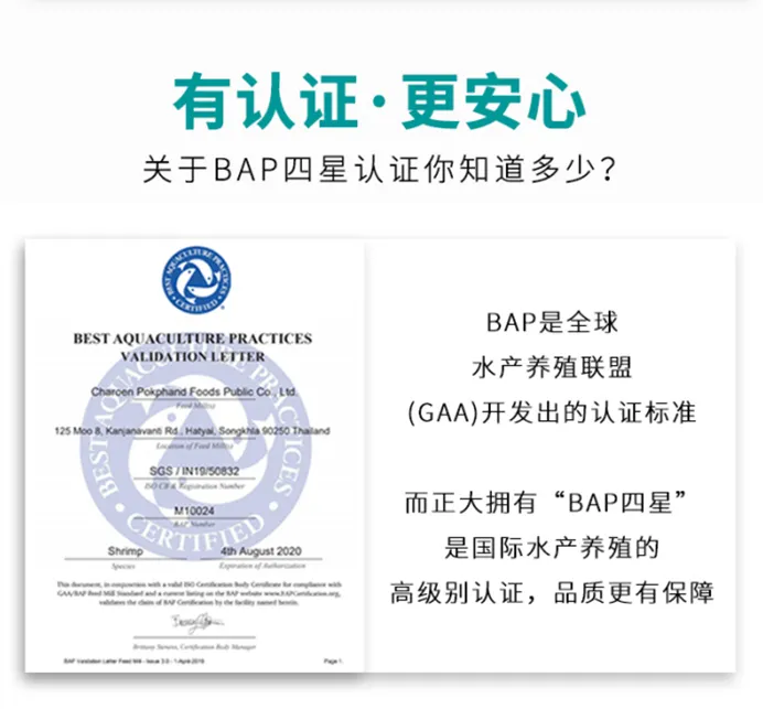 BAP的字面意思就是“zui佳水产养殖规范”,一共有四个方面的考量,通过一个就是一颗星,四星即世界zui高标准❗
