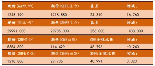 向下滑动查看金银基差与金银比价