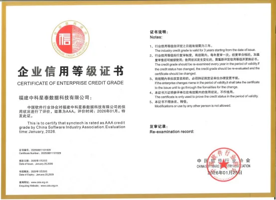 新年伊始,万象更新。福建中科星泰数据科技有限公司以一份含金量最高的“新年贺礼”,迎来了高质量发展的开门红。近日,中国软件行业协会正式发布了2026年1月中国软件和信息技术服务业企业信用评价结果,中科星泰成功获评AAA级——该评价体系中的最高信用等级。这不仅是一项权威的行业认可,更是公司在坚实基础上稳健前行、综合实力迈入国内领先梯队的重要标志,为新一年的征程树立了高起点的风向标。