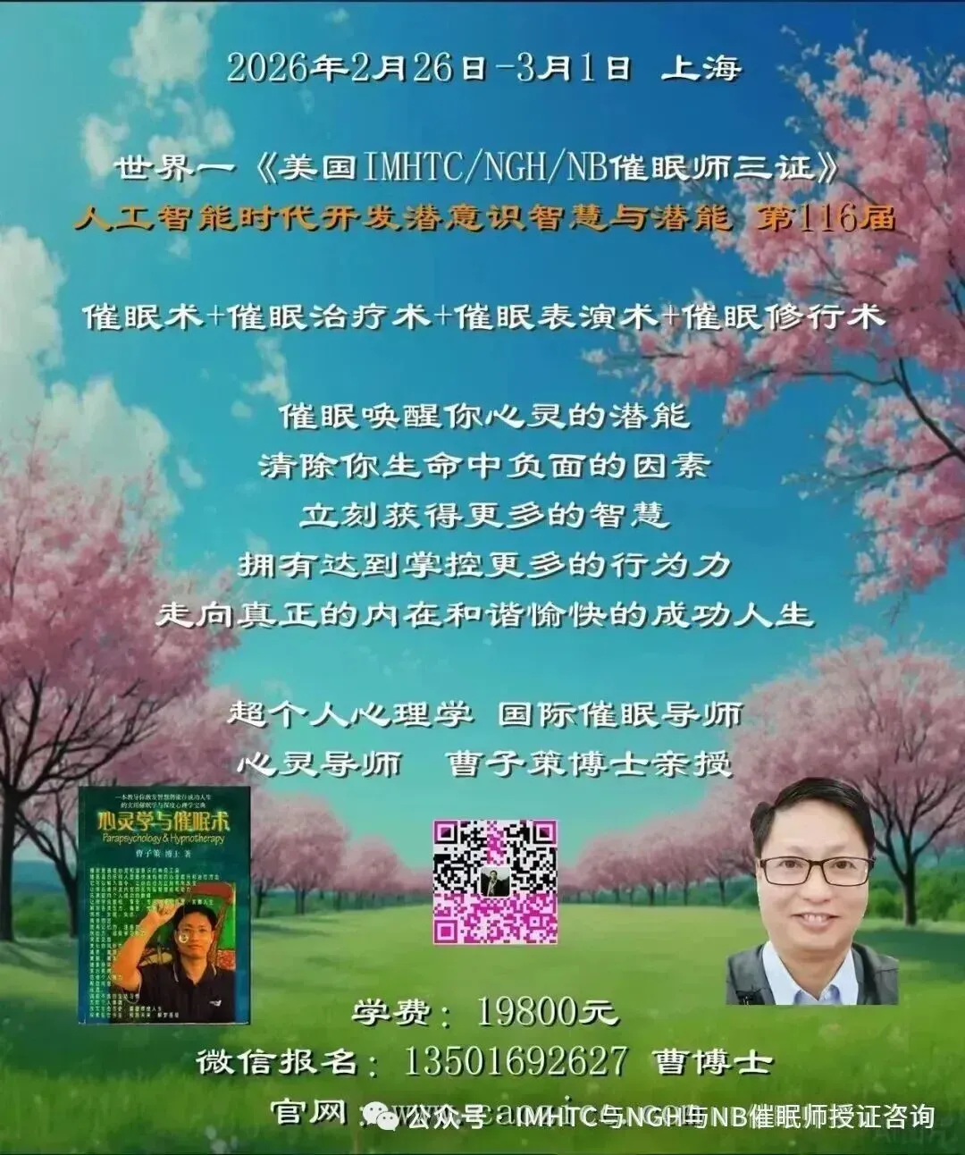 曹博士的身心催眠学体系(催眠术,催眠治疗术,催眠表演术,催眠修行术-曹博士自家),不光注重催眠(治疗)技术,更重点于学员的身心完善与智慧灵性潜能的开发,优于欧美催眠届,此一家!