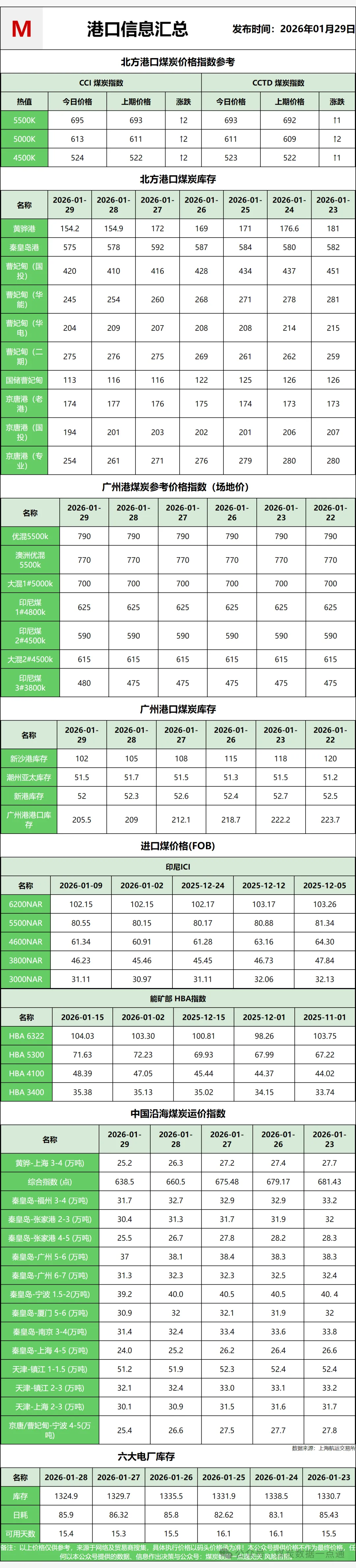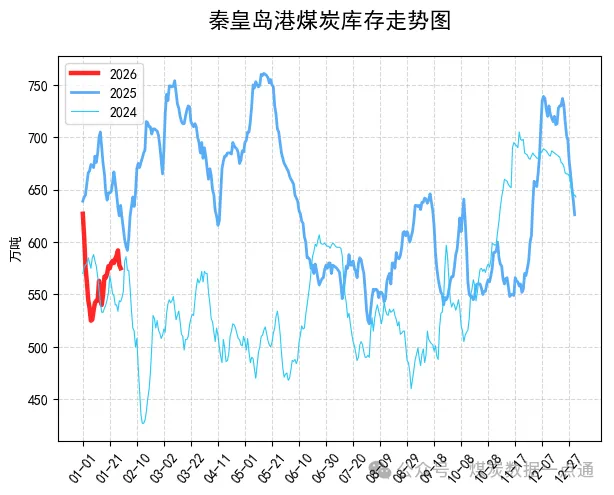 【港口情况】:环渤海港口市场呈现报价坚挺与成交分化的态势。CCI 指数显示,5500 大卡动力煤报价 695 元 / 吨,较前一日上涨 2 元,5000、4500 大卡品种同步小幅上行。北方三港库存维持 2445 万吨左右,高位库存叠加大风天气影响港口装卸,整体去库节奏缓慢。黄骅港神华外购价格小幅下调 3-15 元 / 吨,与市场主流报价形成分化,下游终端对高价接受度偏低,多以刚需小单采购为主,实际成交跟进乏力。