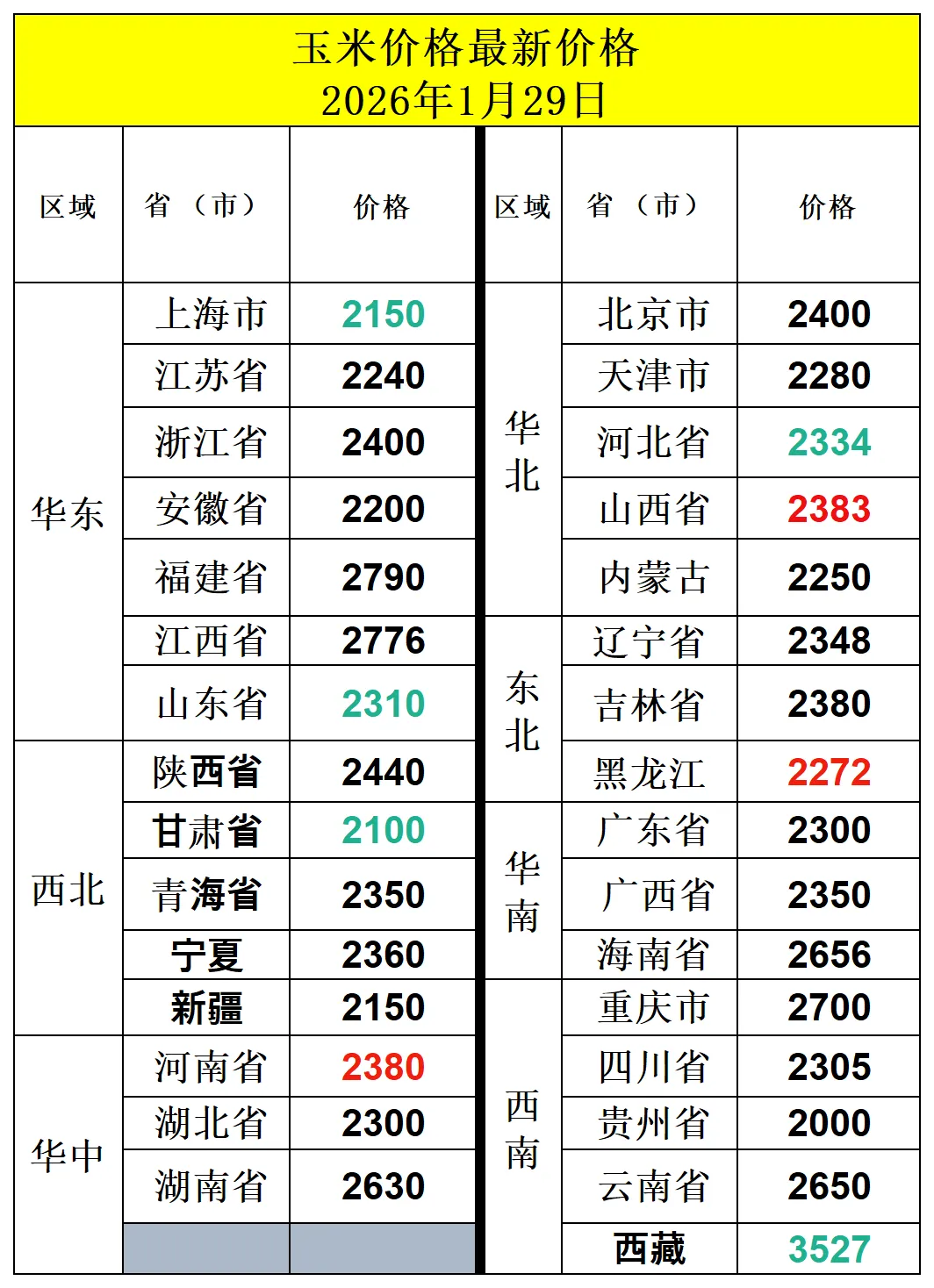 全国各省市玉米价格一览:
