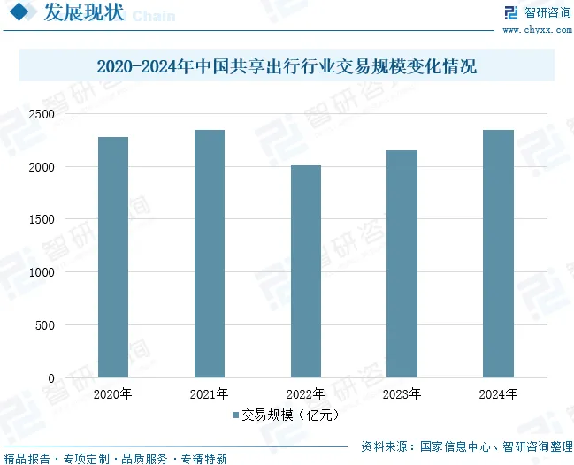 随着互联网技术的飞速发展与公众消费观念的深刻变革,以平台为枢纽、通过共享闲置资源使用权创造价值的共享经济模式迅速崛起,其影响已广泛渗透至生活、生产乃至金融等多个层面。在出行领域,共享模式一方面精准满足了消费者对自驾便利的“求而不得”之需,另一方面则高效盘活了社会既有的车辆闲置资源,减少了资源浪费,正日益成为公众出行的重要选择。2022年,受疫情进入常态化防控阶段的影响,共享出行行业交易规模短期回调至2012亿元,同比下降14.16%。伴随经济复苏与出行需求的稳步恢复,行业已重回增长轨道,呈现明显回暖态势。数据显示,2024年中国共享出行交易规模已恢复并增长至2345亿元,同比增长9.07%。展望未来,随着相关技术的持续进步与政策环境的不断完善,共享出行将与自动驾驶、电动汽车等前沿技术更深度地融合,为公众提供更加智能、便捷且绿色的出行服务,发展空间将更为广阔。