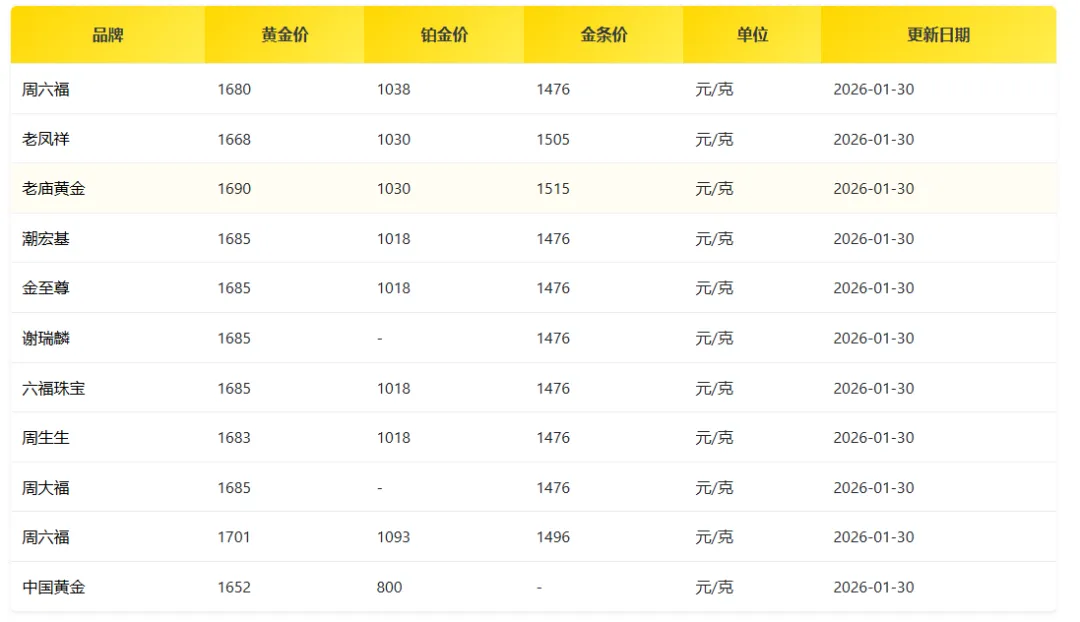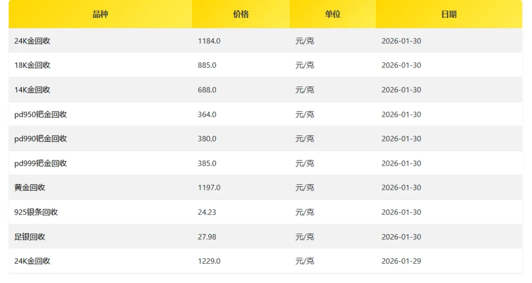 今日银价最新价,今日白银最新价格,今日白银价格(2026年01月30日 )