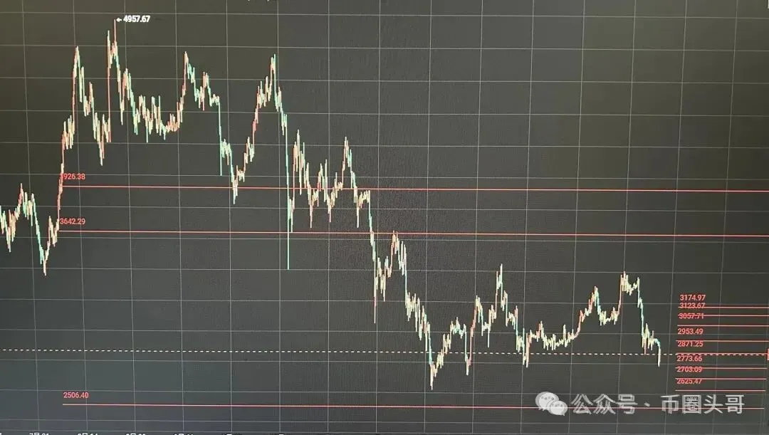 以太坊本次调整幅度超过比特币,显示出相对弱势的市场表现。技术面上,日线级别跌破2900美元、2800美元双重支撑,收出“穿头破脚”大阴线,实体覆盖前3根反弹K线。