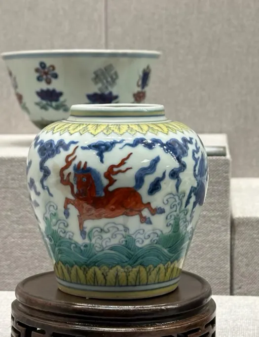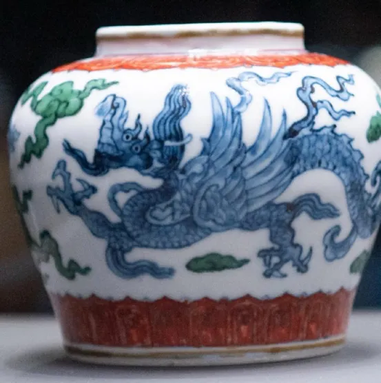 斗彩之所以叫做斗彩,是因为釉下青花和釉上五彩争斗艳而得名。真正的斗彩,成熟于明成化年间。