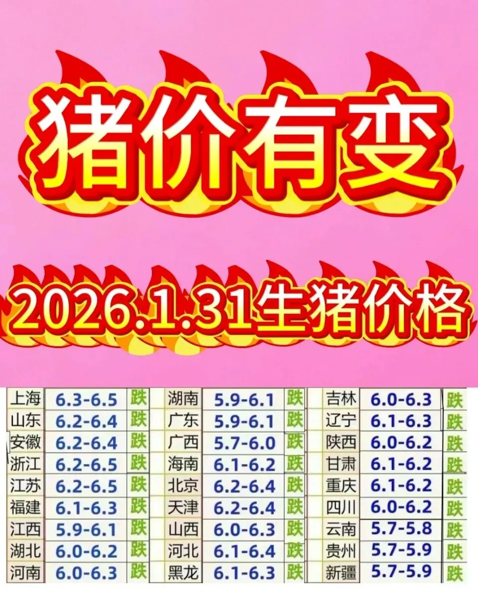 全国各地明日生猪价格(01月31日)【好饲料 九骏造】