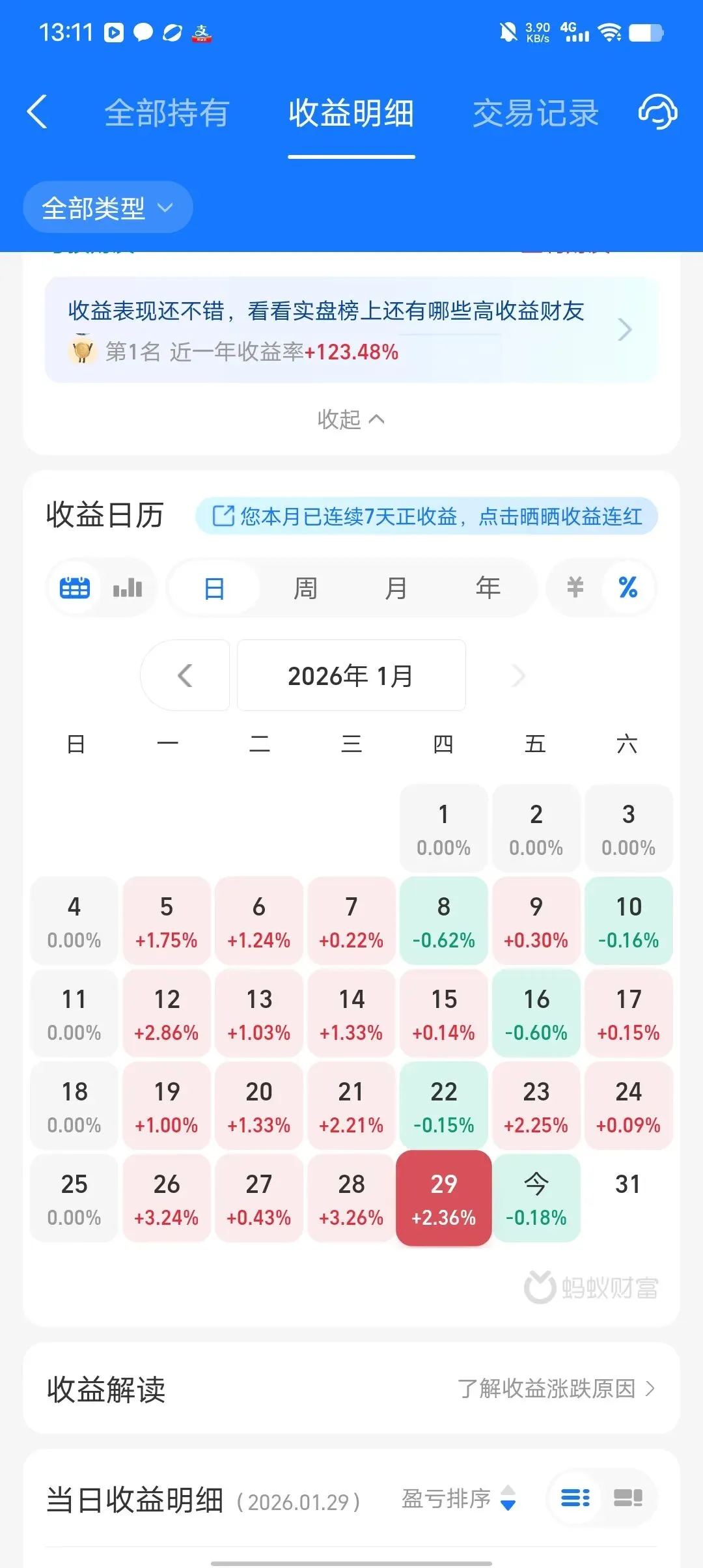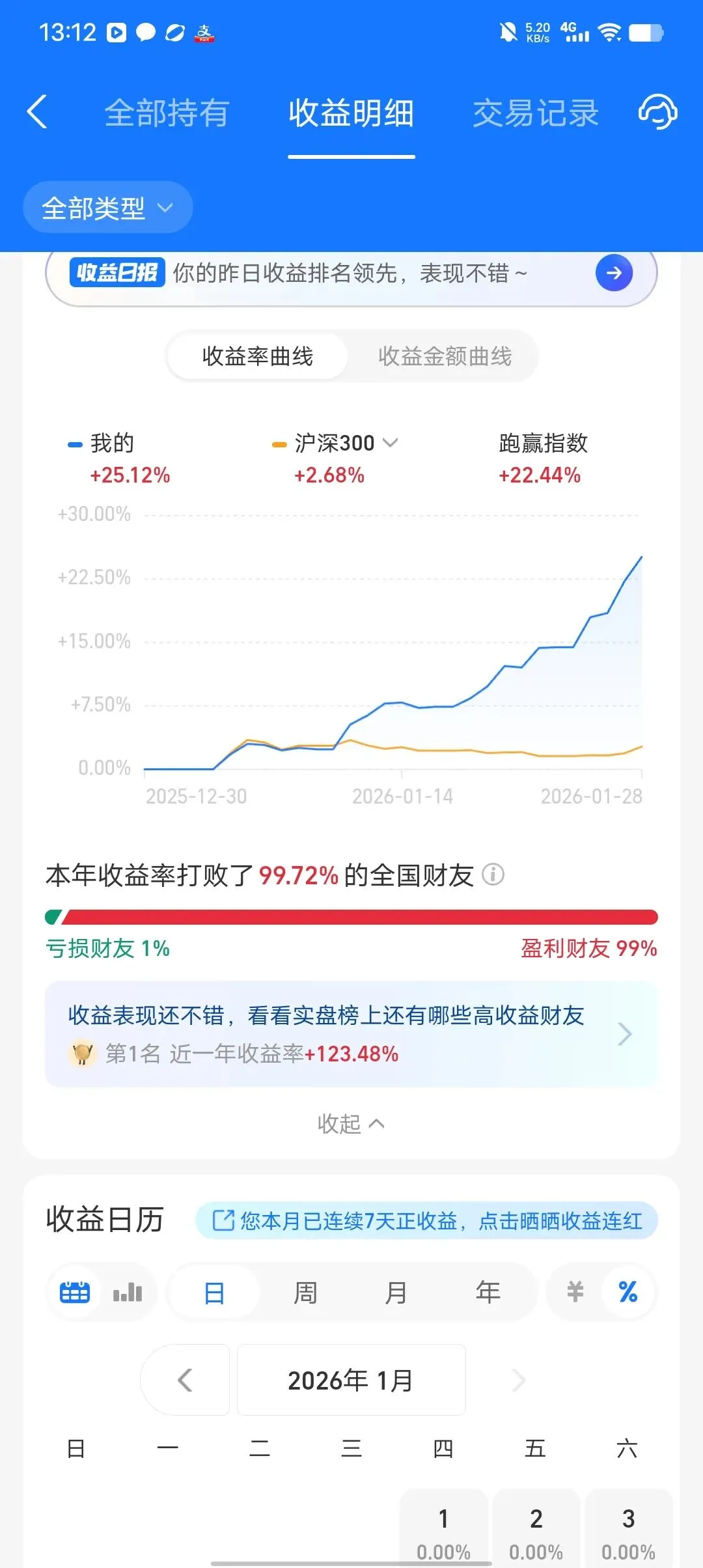2026年第一个月的收益非常满意,后面还有11个月,愿它继续红火!