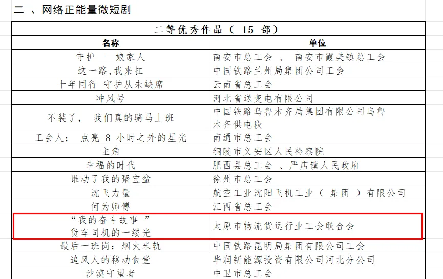 工会拍摄的短视频作品《我的奋斗故事-货车司机的一缕光》,获评全国“网络正能量微短剧二等优秀作品”。