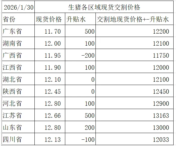 【交割地现货价格】1.30