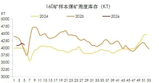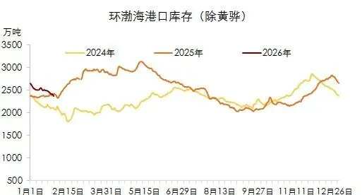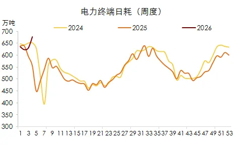 近期寒潮带动全国大部地区降温,南方局地出现降雪,推动电厂日耗升至同期高位,对市场情绪形成短期支撑。然而春节临近,部分工厂将陆续放假,届时日耗预计有所回落。同时,化工行业库存累积,对原料煤需求偏弱,仅维持常规库存,未见集中补库;水泥建材处于传统淡季,叠加房地产行业低迷,非电行业整体需求疲软,仅靠零星刚需补库难以对价格形成有力支撑。