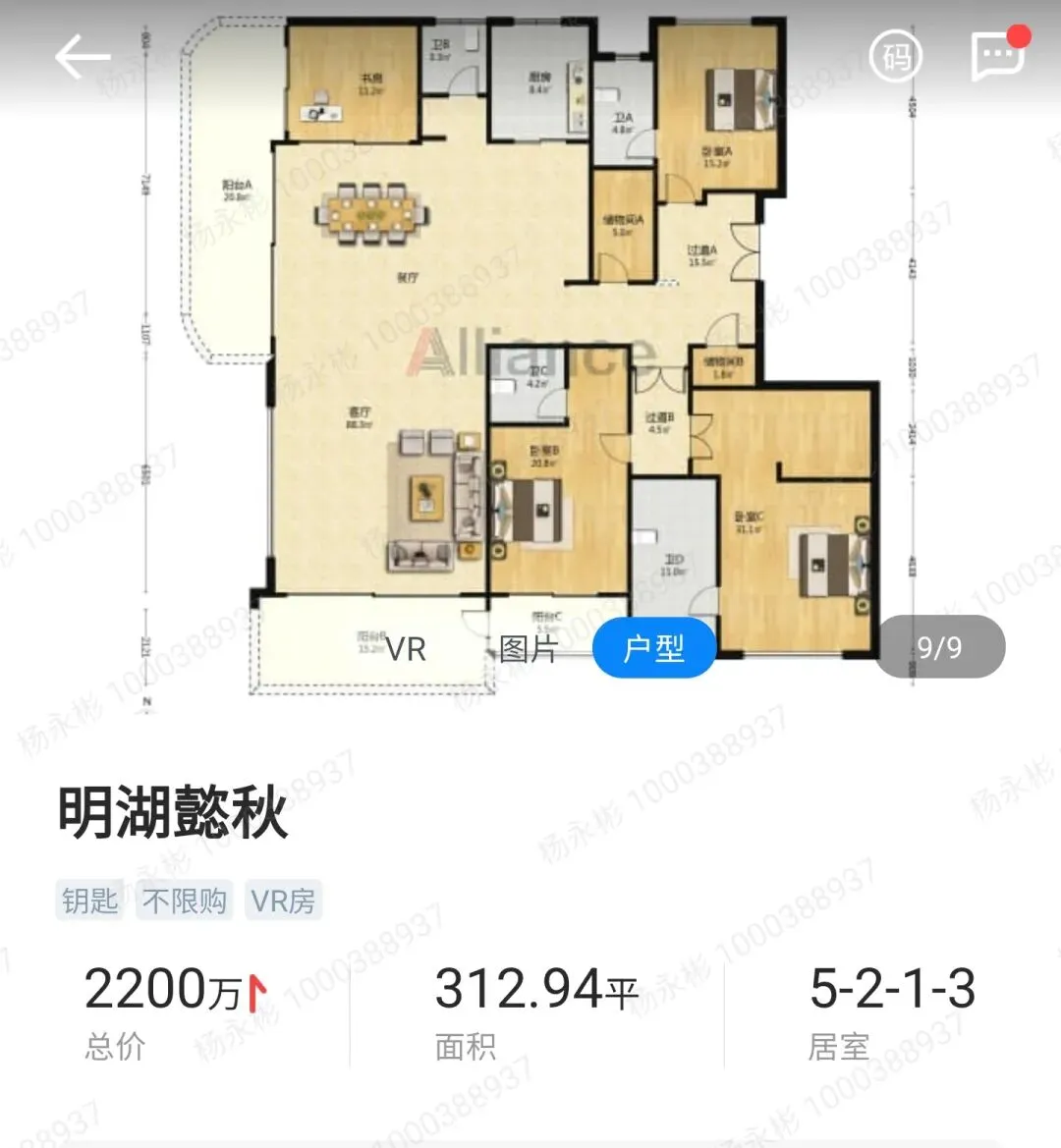 宁波府6/8楼225挂牌998万,云河颂好楼层235户型成交价890万。明湖懿秋能连续成交,在现在的楼市行情中还是难得,板块豪宅流量吸引力也会越来越强,成为宁波豪宅市场的引领者。