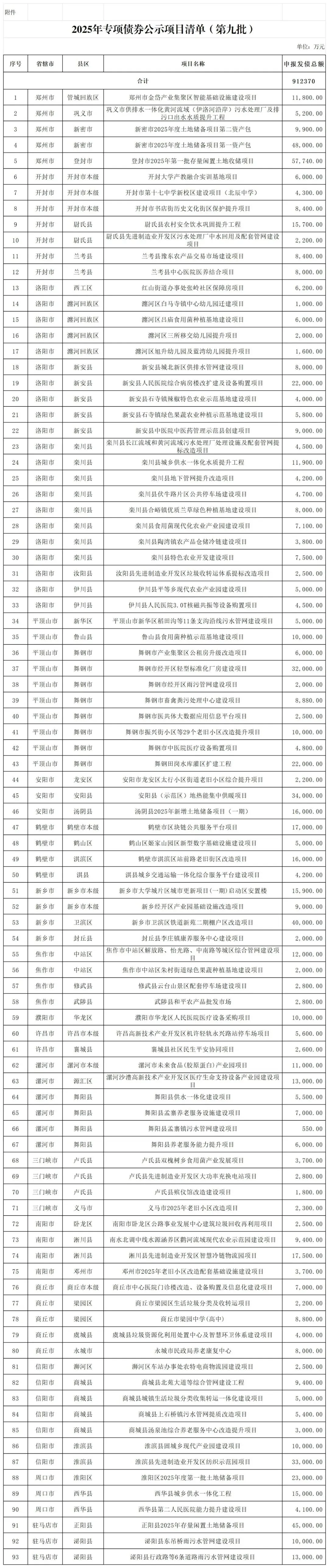 1月30日,河南省财政厅公示2025年第九批通过发行资料评审的专项债券项目(非拟发行项目)。