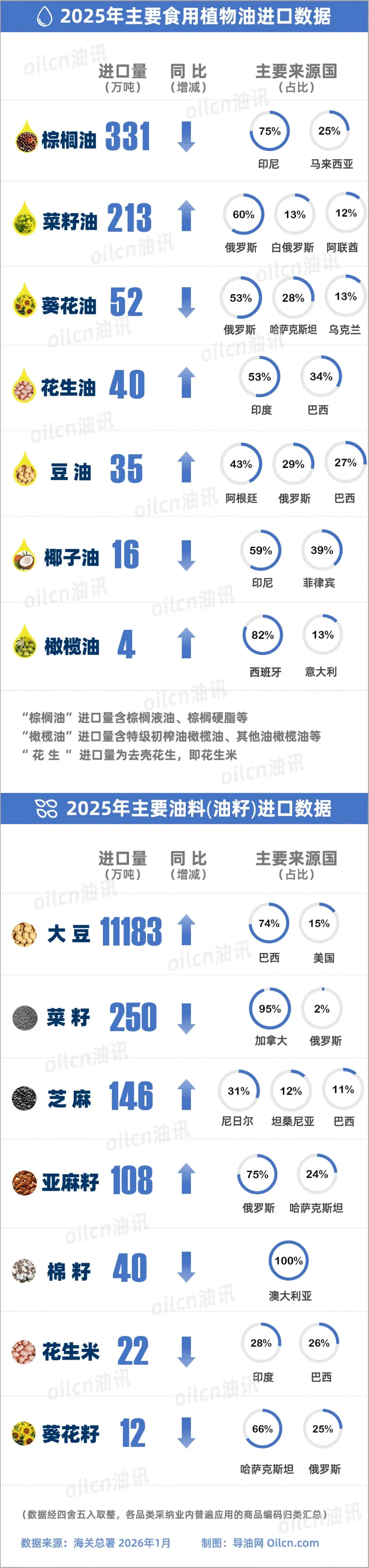 3.一图全览 | 2025年油脂油料进口数据出炉,哪些增长哪些减少?