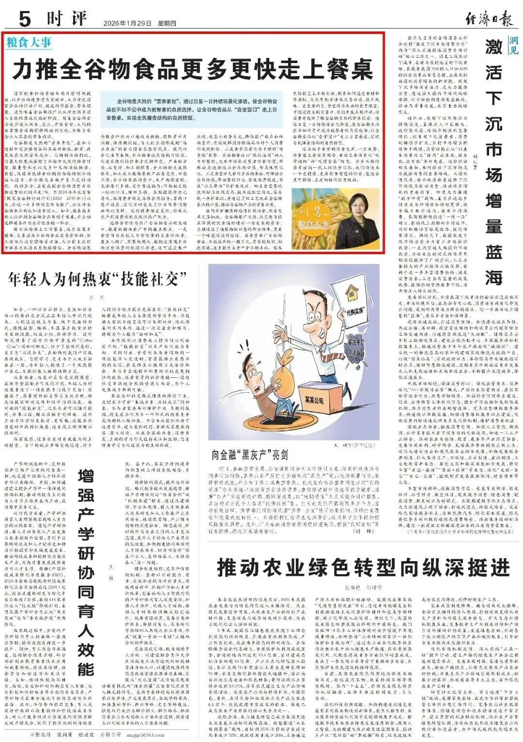 国家粮食和物资储备局日前明确提出,以全谷物进食堂为突破口,大力推进国家全谷物行动计划,促进科学膳食、营养健康。这意味着全谷物推广正从理念倡导迈入系统性落地实施新阶段。随着全谷物食品逐步进入机关、企业、学校食堂,人们的日常膳食结构将持续得到优化,为粮食安全注入深层的营养内涵。