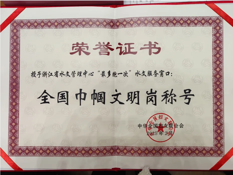 浙江“最多跑一次”水文服务窗口荣获“全国巾帼文明岗”称号。