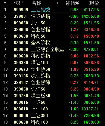 先看指数,上证收在4117,跌了0.96%,创业板靠着宁王这些权重力挽狂澜涨了1.27%,但这掩盖不了整体的颓势。