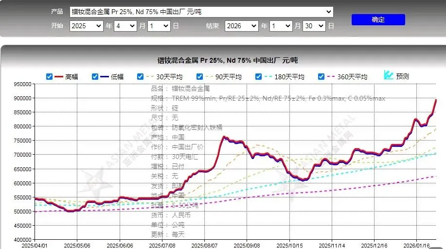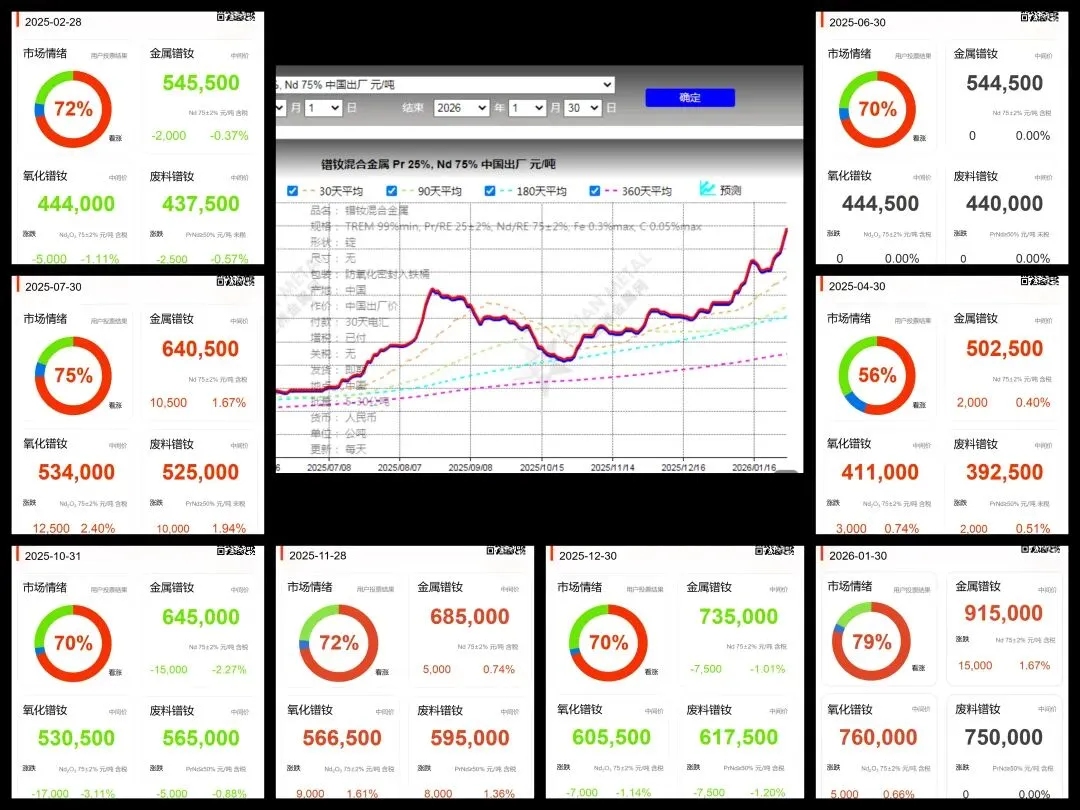 - 市场解读:下游磁材企业为保障春节后生产,节前备货需求集中释放,叠加镨钕供应端的持续偏紧,共同推动了本轮价格冲高。