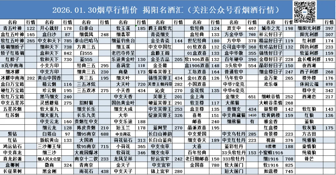 >名酒汇01.30行情报价
