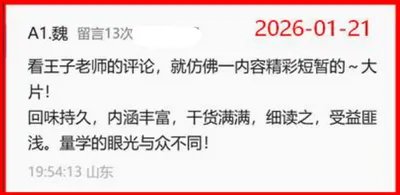 山东“AI魏”留言:看王子老师的收评,就仿佛看一部内容精彩的大片!回味持久、内涵丰富、干货满满、细读之,受益匪浅。量学的眼光与众不同!