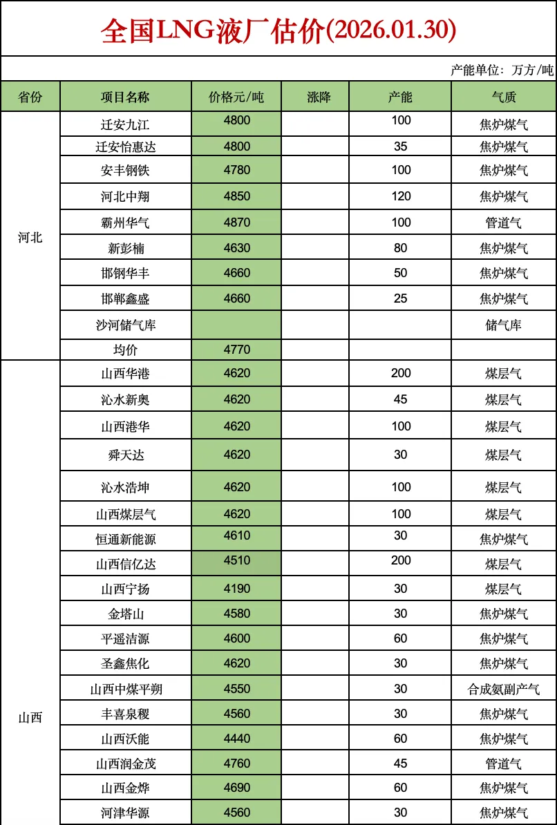 >2026.01.30 LNG价格播报