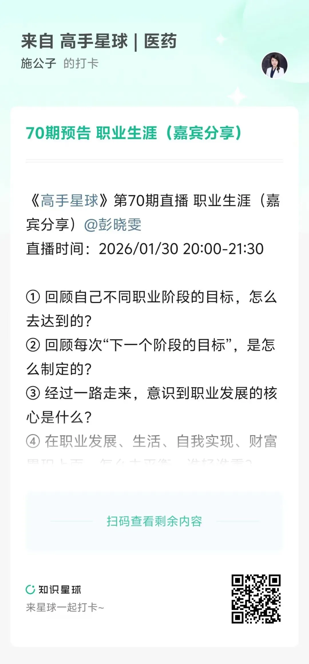 分享嘉宾:《高手星球》第70期直播 职业生涯(嘉宾分享)@彭晓雯