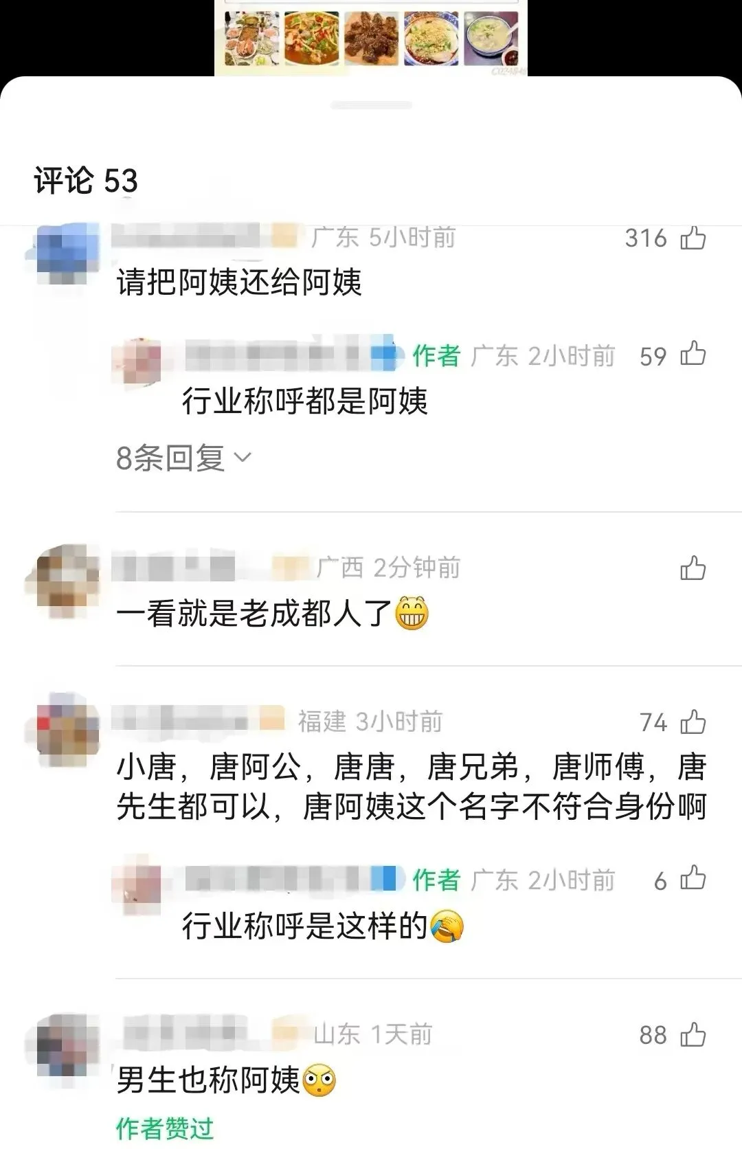 评论区迅速分化——有人直言“请把阿姨还给阿姨”,也有人回应称,这是行业内部的通行叫法,与性别无关。