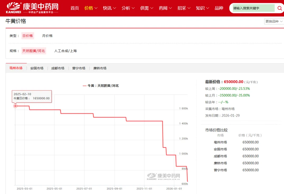 天然牛黄价格出现显著下降主要是由终端需求变化、市场供应增加及进口政策开放等多重因素共同导致的。
