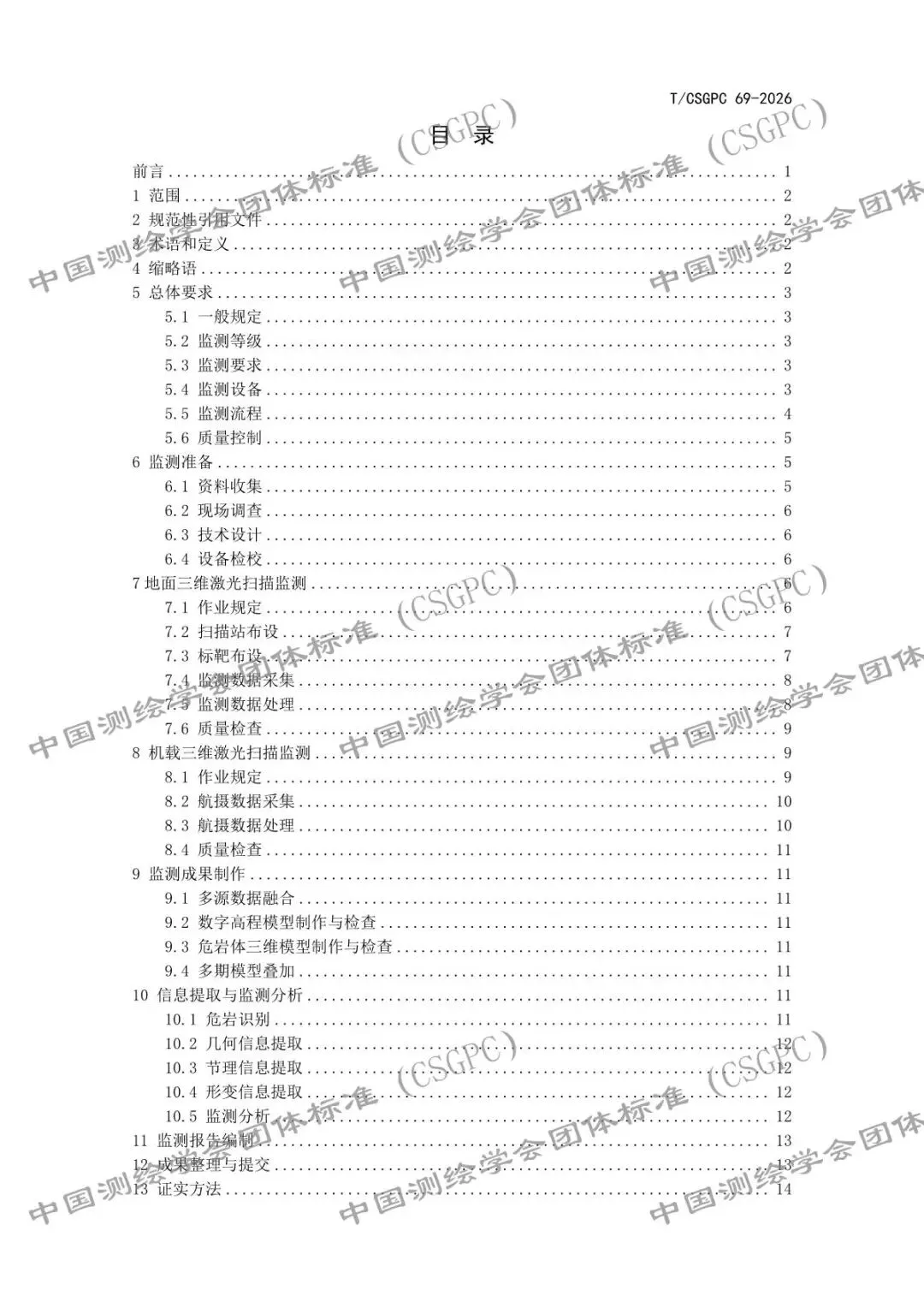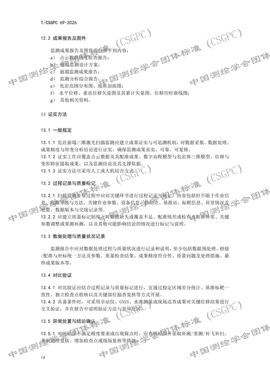 关于批准发布《三维激光扫描 危岩崩塌监测规程》CSGPC标准的公告