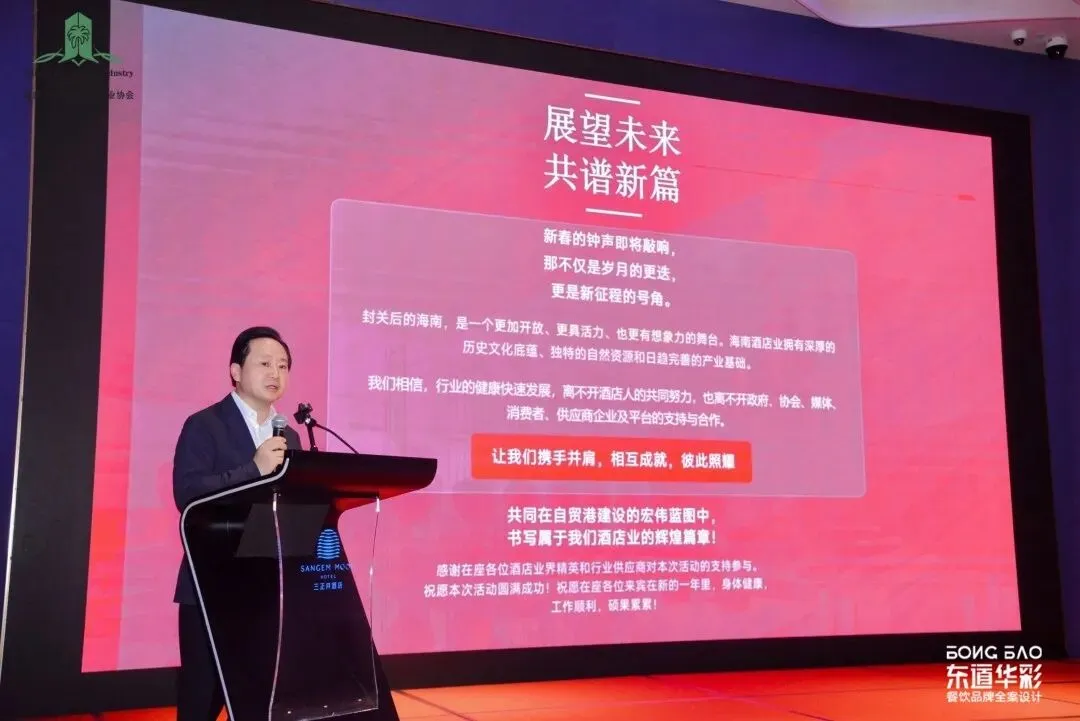 在行业情况分享环节,海南省酒店与餐饮行业协会陈恒会长登台致辞。他全面回顾了过去一年海南酒店业在市场挑战中坚守初心、砥砺奋进的发展历程,肯定了全行业在服务品质提升、业态创新升级等方面取得的显著成效,并围绕春节旅游市场服务保障、行业可持续发展等核心议题,为新一年行业发展指明方向,引发全场共鸣。