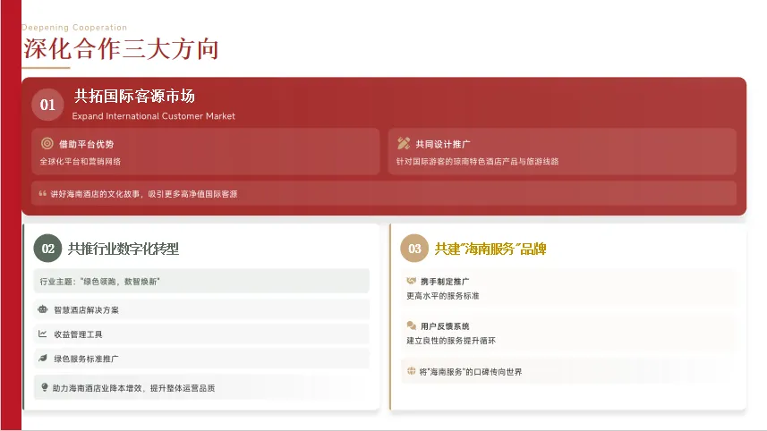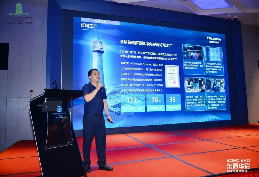 为强化产业链协同,活动设置供应商推介环节。招商银行海口分行、海南凯玉酒店厨房设备工程有限公司、海信日立、today 今天便利店等代表性供应商依次登台,展示了金融服务、厨房设备、智能空调、零售配套等领域的优质产品与服务方案,搭建起酒店企业与供应商面对面沟通的桥梁,助力供需双方精准对接、互利共赢。