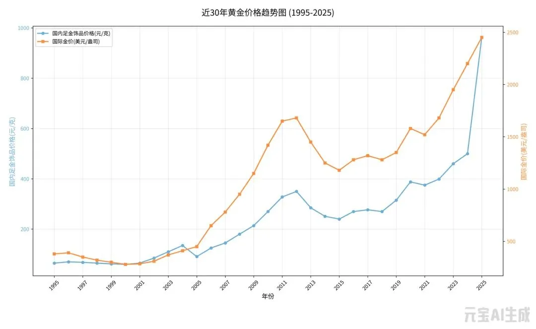2025-2026年,黄金价格呈现持续上涨态势,2025年从年初约2622美元/盎司涨至年末约4550美元/盎司,2026年1月进一步突破5000美元/盎司,创历史新高,有加速赶顶趋势。核心驱动因素包括央行购金、美联储降息、地缘政治风险及美元信用担忧。