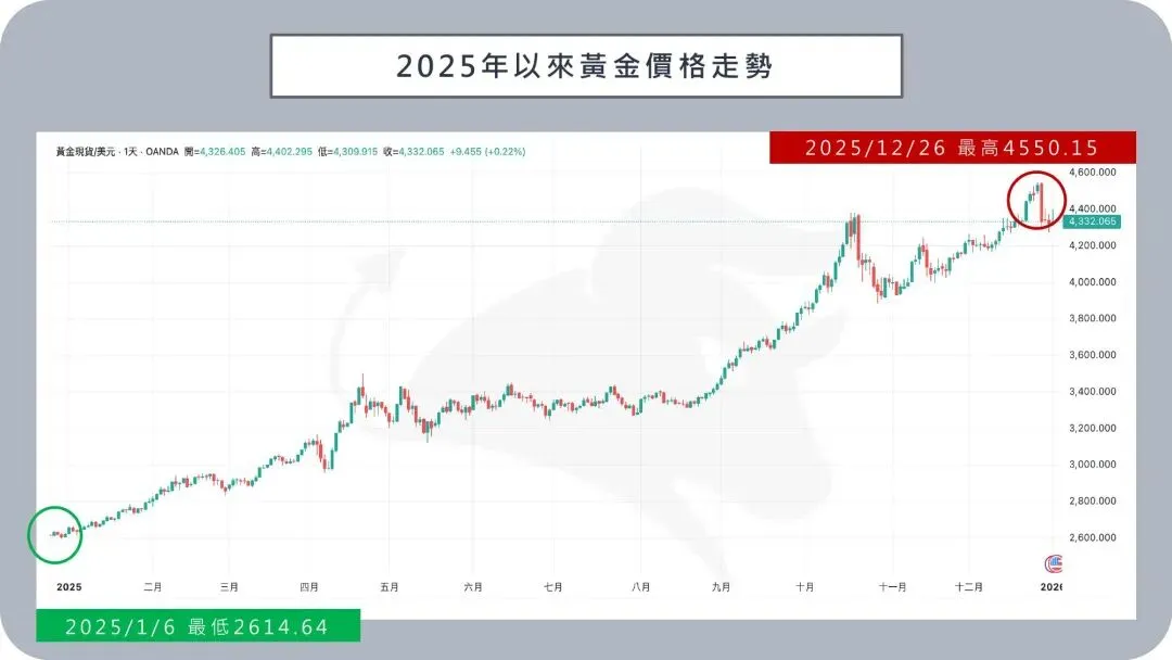 12月:突破4500美元/盎司,年末收于约4550美元/盎司。