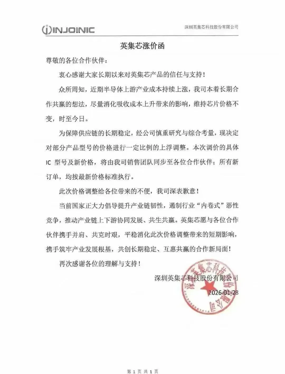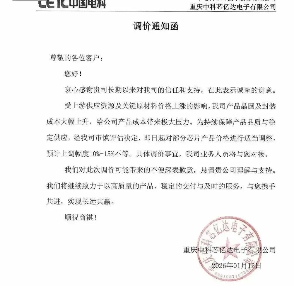 与您一路同行,做您最忠实的拥护者--PCB行业融合新媒体-2026年最有价值的电路板产业服务平台!欢迎您的关注与点赞!祝您事业有成!平安喜乐!英集芯发布芯片涨价函