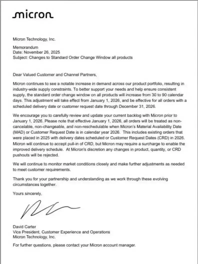 美光:新价格普遍上涨约20%