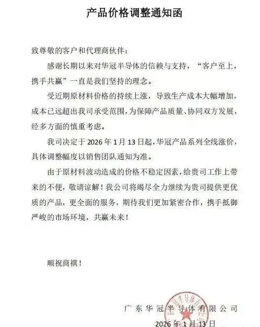 华冠半导体:全线涨价