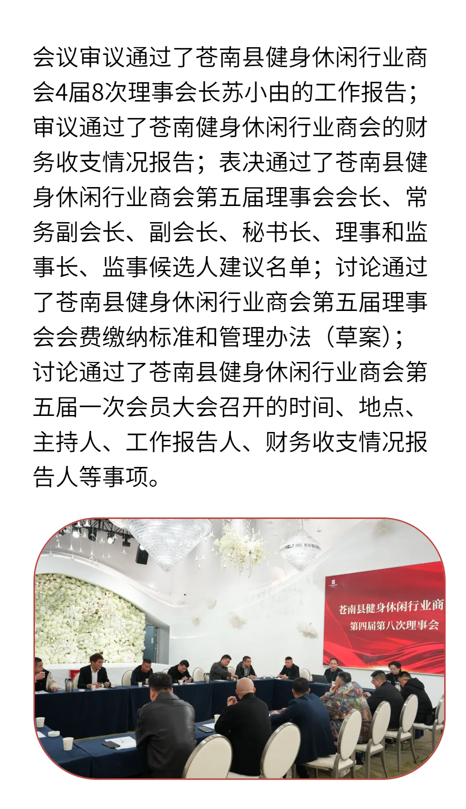 >苍南县健身休闲行业商会第四届第八次理事大会圆满成功