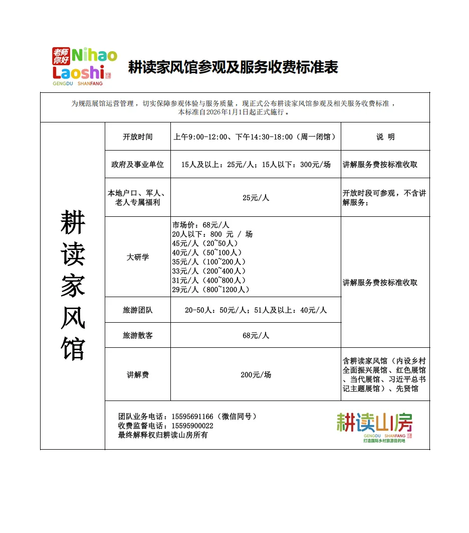 >透明收费 | 耕读家风馆参观指南及服务价格一览