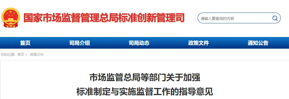 为贯彻落实《国家标准化发展纲要》,加强标准制定与实施的监督工作,更好发挥标准化在推进国家治理体系和治理能力现代化中的基础性、引领性作用,市场监管总局、中央网信办等17部委联合发布《关于加强标准制定与实施监督工作的指导意见》,主要内容包含:加强标准制定的监督;加大标准实施监督力度;创新标准制定与实施的监督办法;强化标准制定与实施监督工作责任。