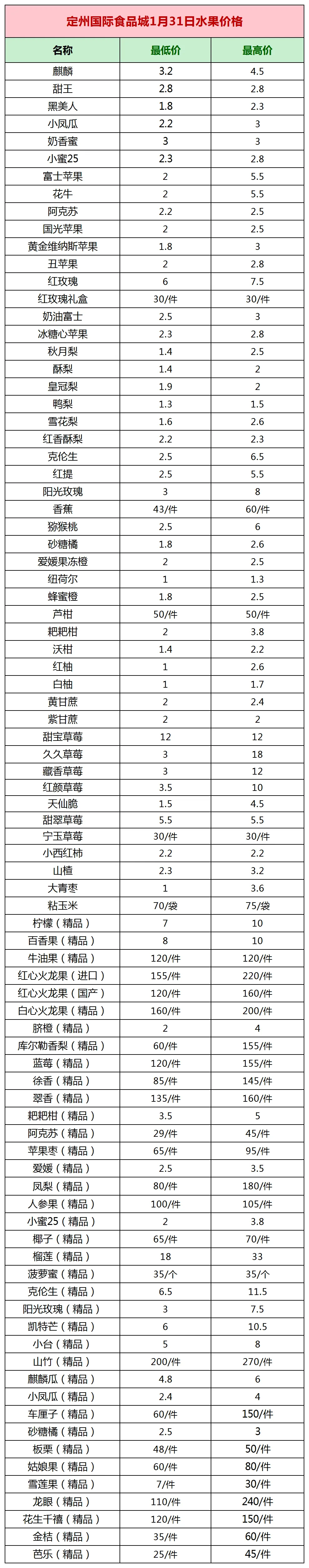 【民以食为天,365天,天天无淡季。为方便广大商户进货采买,获取最新蔬果信息,此微信号每日为您提供定州国际食品城蔬果行情。以下果蔬价格数据计量单位均为元/斤!果蔬价格行情波动比较频繁,请以实际购买单价为准!】
