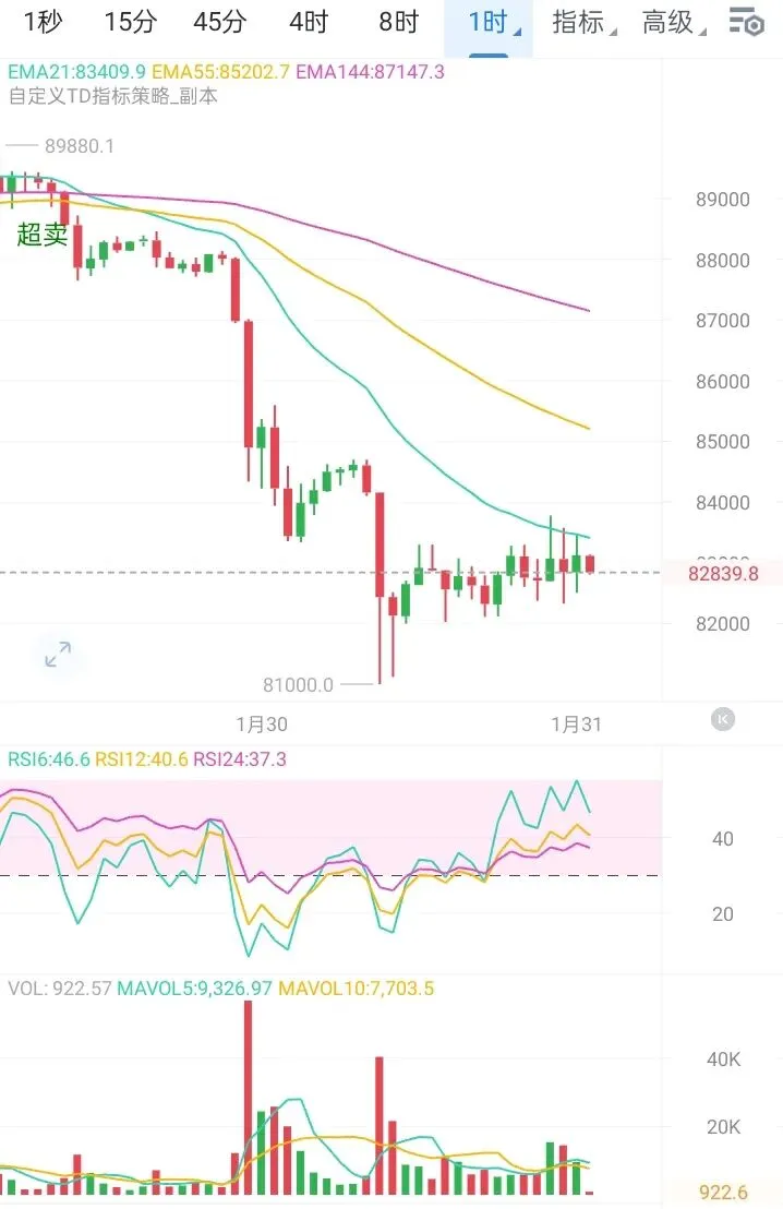 昨晚比特币行情整体呈现窄幅震荡,价格在82500-83500美元区间内反复运行,未能形成有效突破。从技术面看,价格在触及区间上沿83500美元附近后多次承压回落,表明该区域存在较强的卖压,市场短期动能偏空。