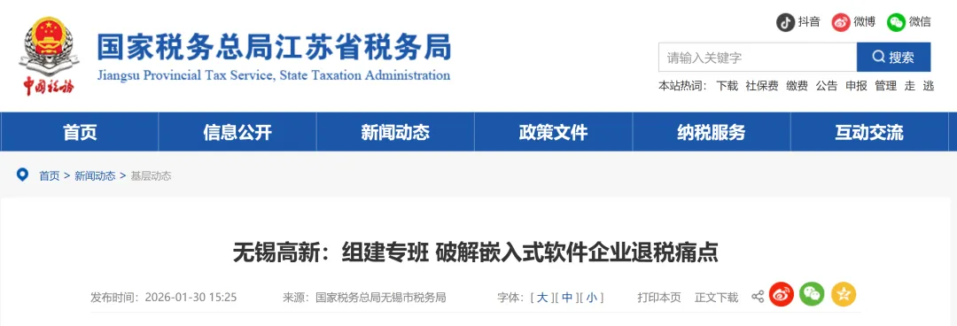 嵌入式软件是嵌入在硬件设备中、实现特定功能的专用程序,也是支撑数字经济发展的重要组成部分,其享受的增值税即征即退政策是激发企业创新的重要红利。受软硬件捆绑销售特性影响,企业政策适用易出偏差,引发少缴多退风险。国家税务总局无锡高新技术产业开发区税务局组建即征即退专班,建立“数据采集—数表比对—定制方案—动态管理”全流程管理机制,确保企业安心退税、税收规范监管。