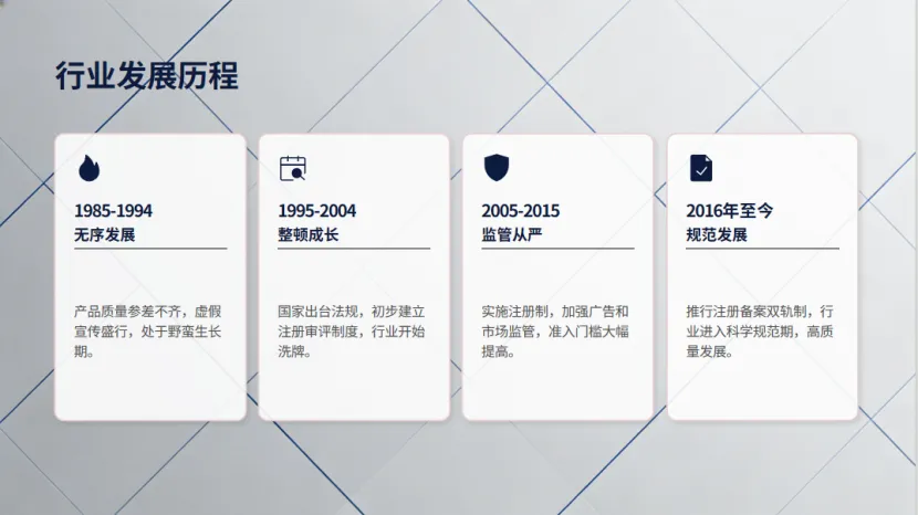 我国保健品行业诞生于20世纪80年代,初期经历了无序扩张的乱象,产品质量参差不齐、虚假宣传盛行。随着监管体系的逐步完善,行业从1995年开始进入整顿成长阶段,《食品卫生法》确立了保健食品上市前注册管理制度;2005年《保健食品注册管理办法》和《保健食品广告审查暂行规定》的出台,从审批和广告层面进一步规范行业行为;2015年新修订的《中华人民共和国食品安全法》将保健食品纳入特殊食品严格管理,明确禁止广告涉及保证功效、疾病治疗等内容;2016年推行的《保健食品注册与备案管理办法》实施注册备案双轨制,实现风险分类管理;2018年权健事件后,国家市场监督管理总局等13部门开展的“百日行动”,对虚假宣传、违法广告等乱象进行集中整治,推动行业进入科学规范发展的成熟阶段。截至2024年7月,我国获得注册的保健食品批文已达1.4万余个,2024年第三季度新增注册批文229个、备案批文1249个,监管体系的完善为行业健康发展筑牢了制度根基。