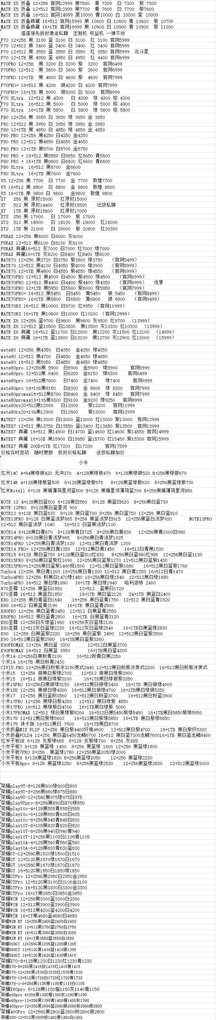 华为小米手机行情