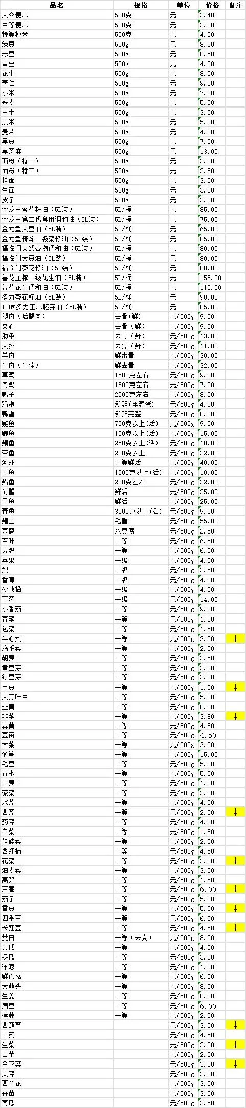 今日(1月31日)市场部分农副产品零售价格公示:(起)